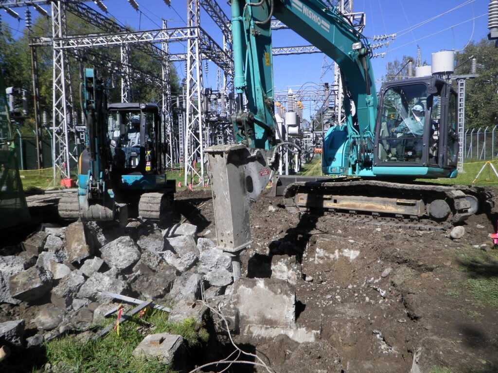老朽化した変圧器や電柱などのコンクリート基礎を、油圧ブレーカーなどの専用機械で確実に解体します。作業では周辺構造物や環境への影響を最小限に抑えるよう配慮し、安全かつ効率的な撤去を徹底しています。新たな設備設置や更地化に向けた重要な工程として、高い技術力で対応しています。